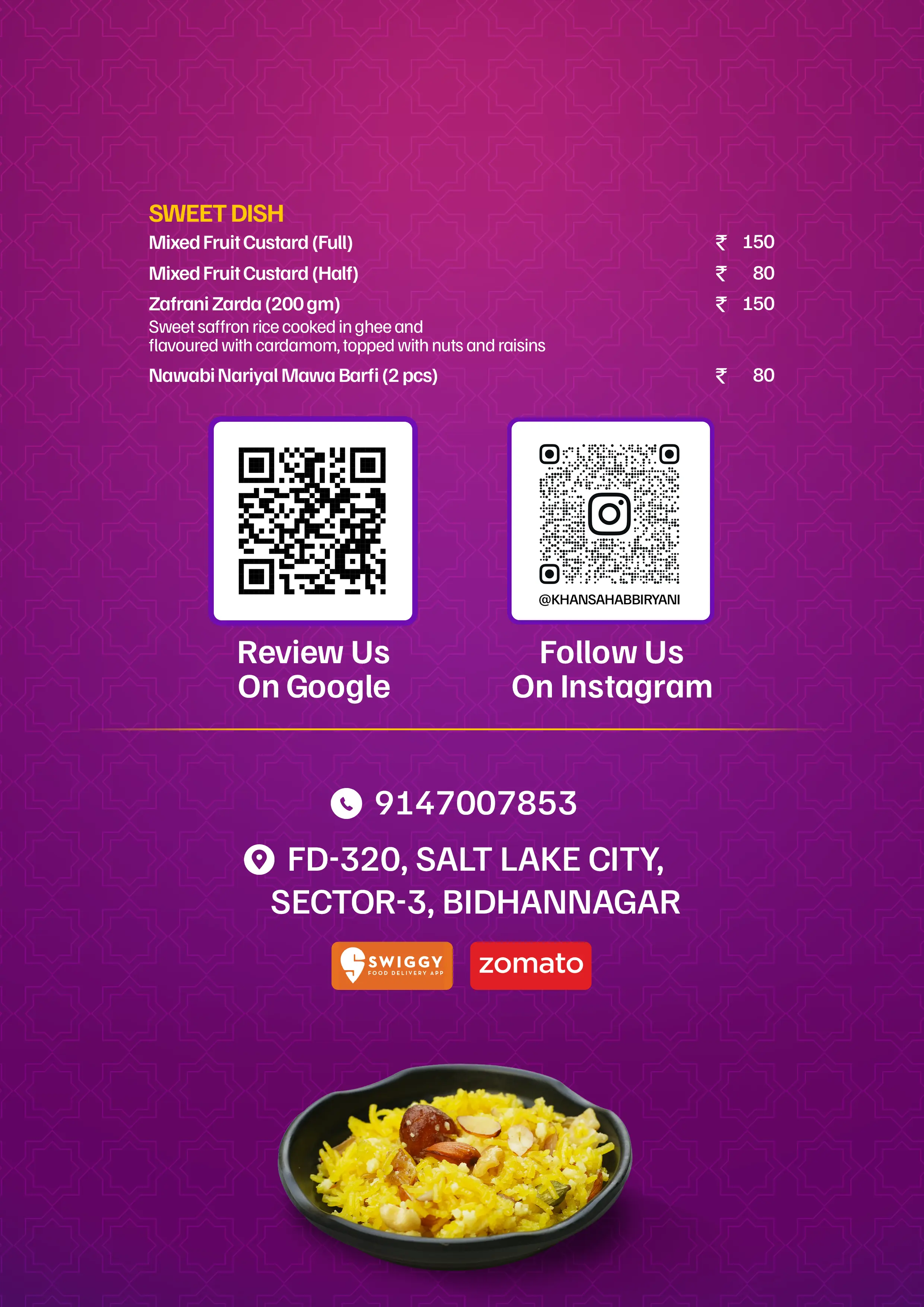 Indulge in an exceptional selection of delightful dining options at Khan Sahab Biryani.